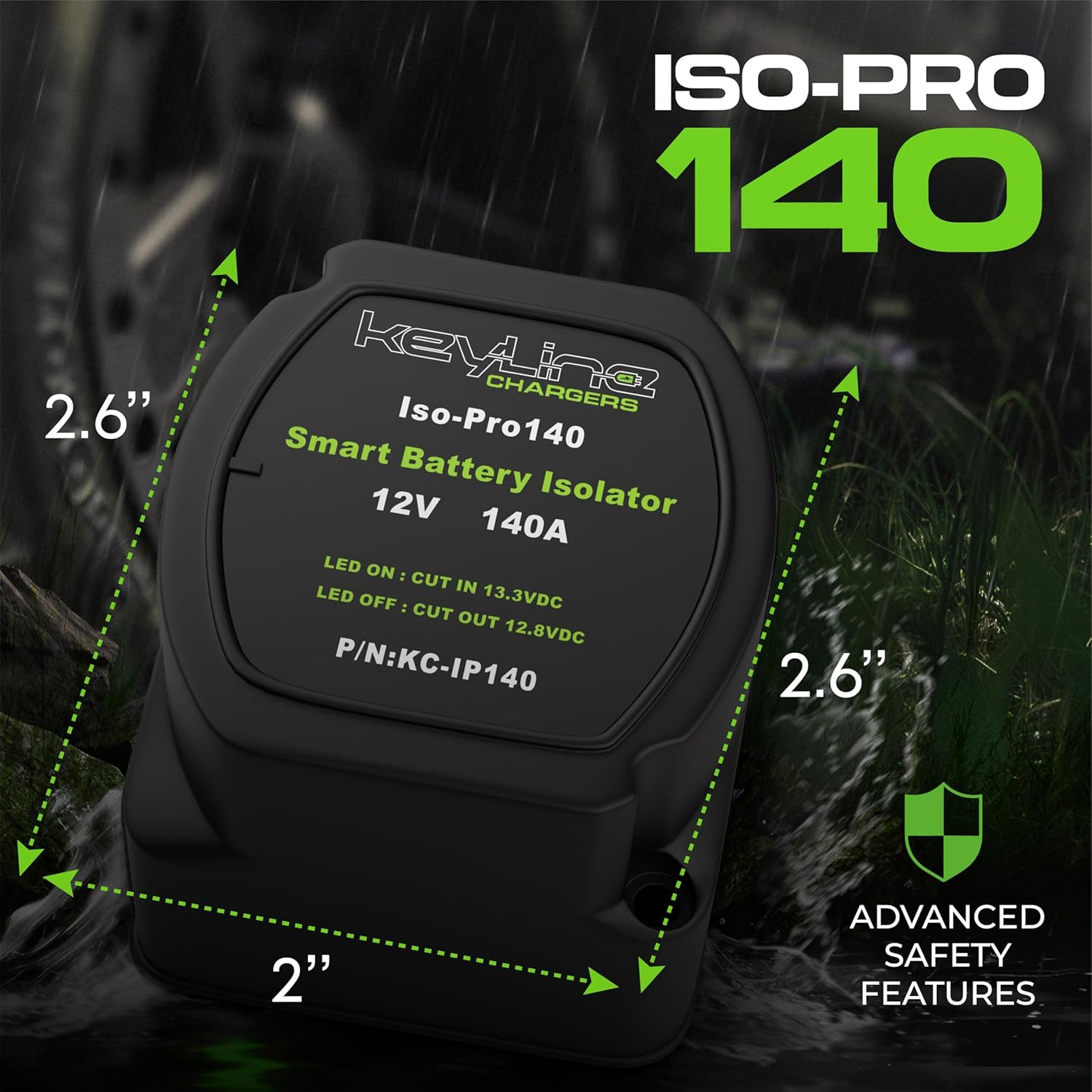 - Compact dimensions: 2.6” x 2.6” x 2” for tight spaces, under-hood installs, or integration into a battery relocation kit