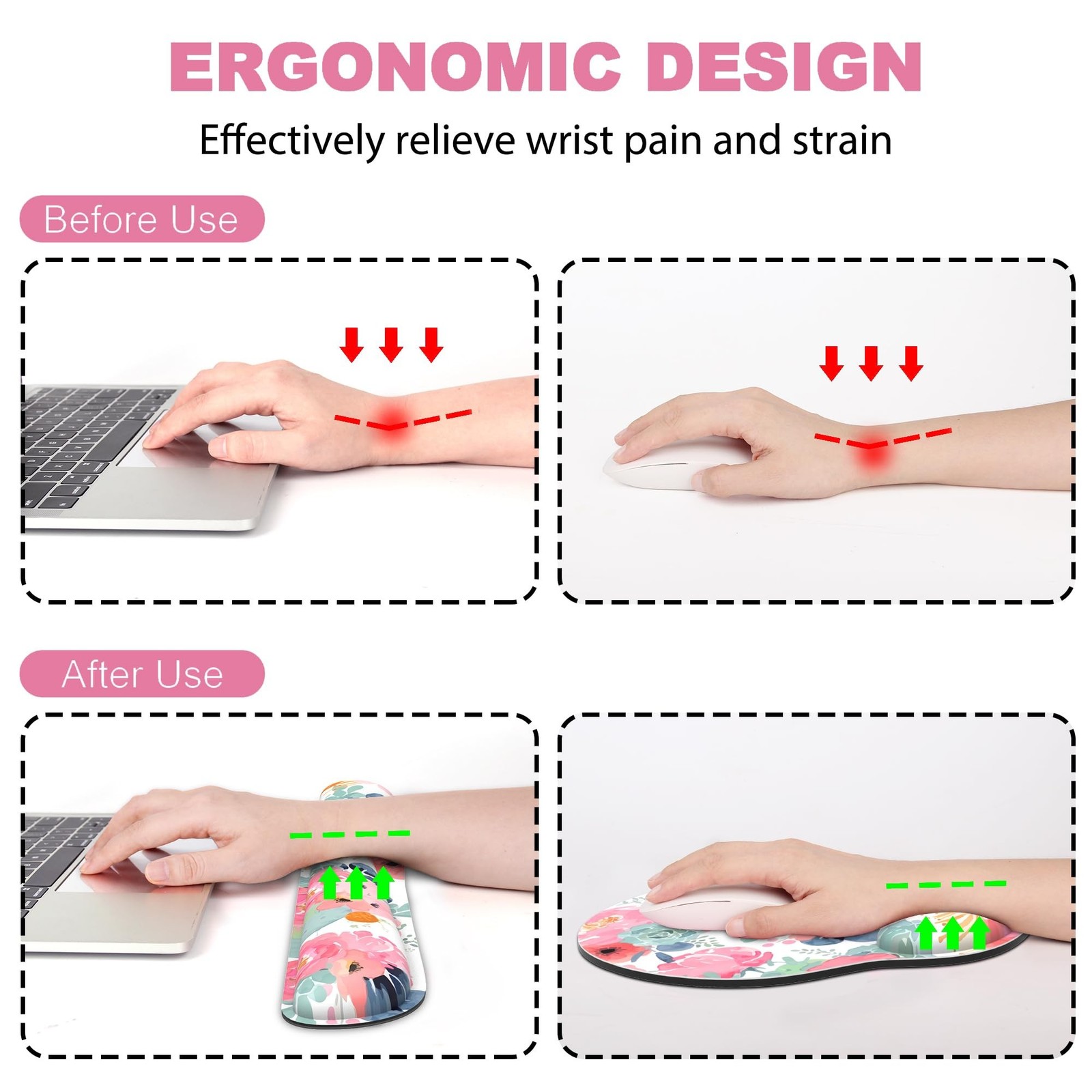 Relieve wrist strain and boost comfort during long work or gaming sessions with an ergonomic mouse pad featuring integrated wrist support.