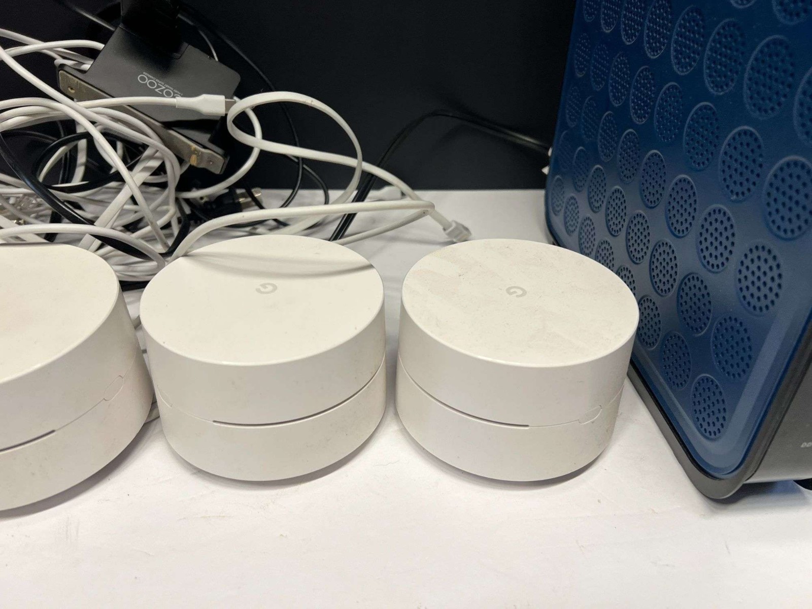 - Contents: Google WiFi Mesh System Bundle units shown in the photo (no extras).