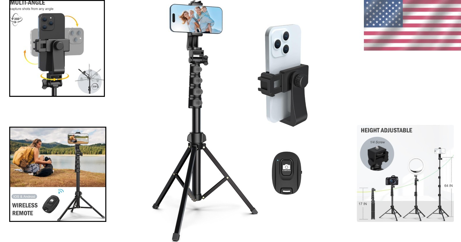 - Up to 64 inches maximum height for tall, dynamic shots